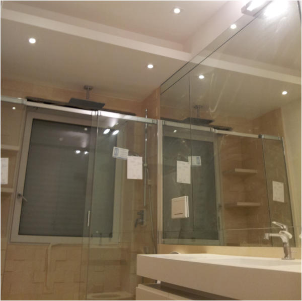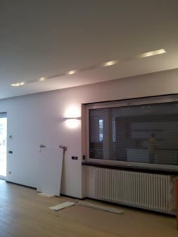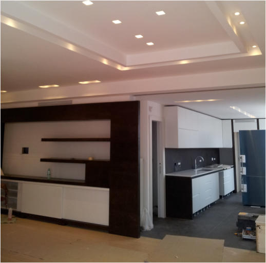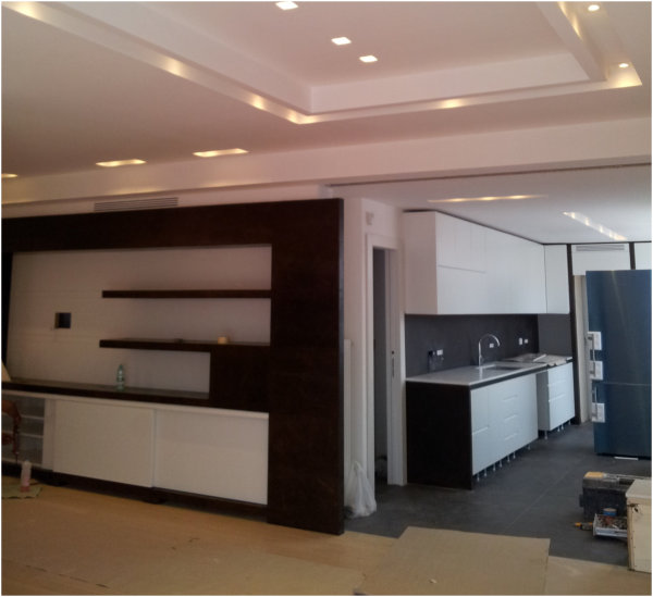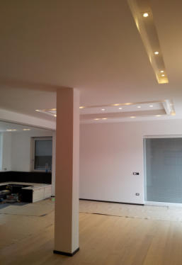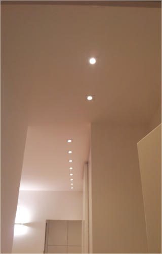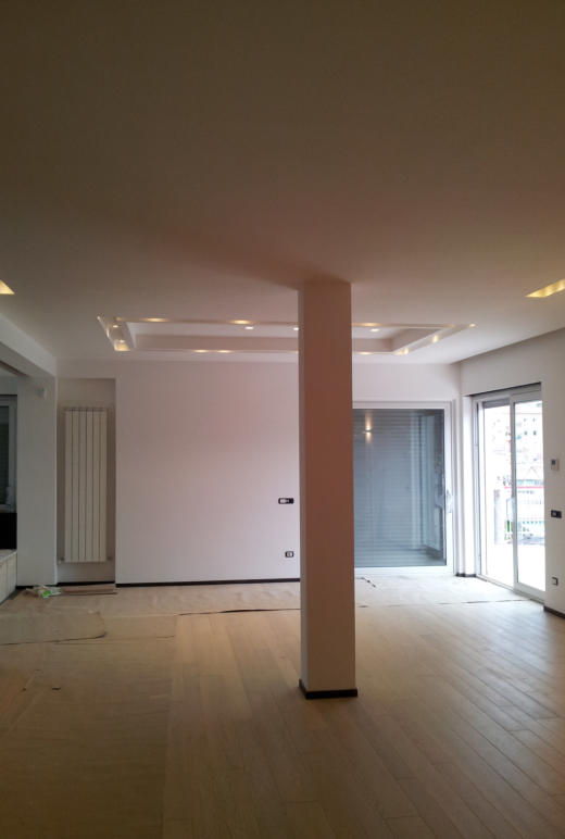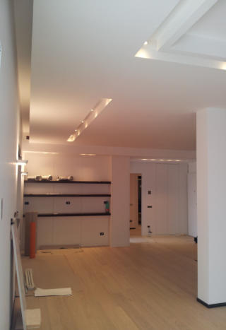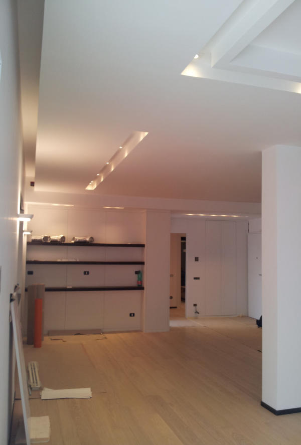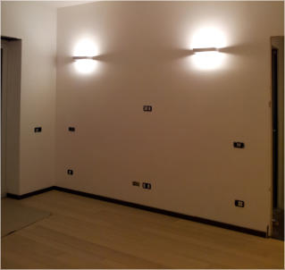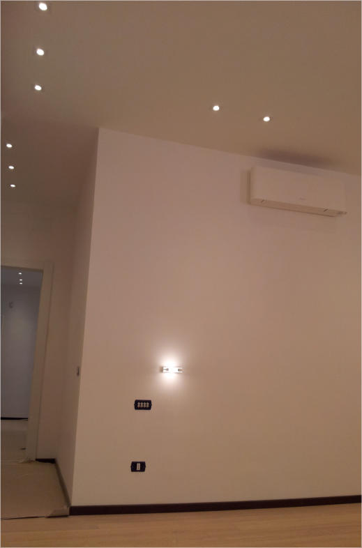 Attico privato nel quartiere di Monteverde Nuovo in Roma. Impianto elettrico completamente in traccia.  Nella realizzazione dell'impianto sono stati usati apparecchi della Bticino serie Living e in particolar modo è stato utilizzato il sistema MyHome che implementa, in un unico cavo "bus", la domotica di tutti gli ambienti.